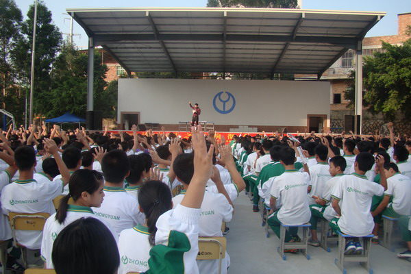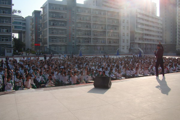 10月26日下午,李陽瘋狂英語竇勇老師來到中遠學校舉辦大型演講會,為學生們帶來不一樣的學習英語的方法,學校的英語老師及全體學生參加了演講會。 活動現場,竇勇老師用幽默并富于感染力的語言吸引著每一位同學,積極與老師同學們互動,現場不斷傳來整齊的朗讀“I can’t stand my poor English!”的聲音。除互動外,竇勇老師還叮囑學生們注意記筆記,一條條傳授學習英語的技巧。最令人印象深刻的是,竇勇老師寓教于樂,帶動學生們用肢體語言來學習英語語法知識。 此次演講會現場的氣氛異常熱烈,帶動了同學們學習英語的熱情,培養了同學們學習英語的興趣,對同學們提升英語口語、英語學習水平有很大幫助。