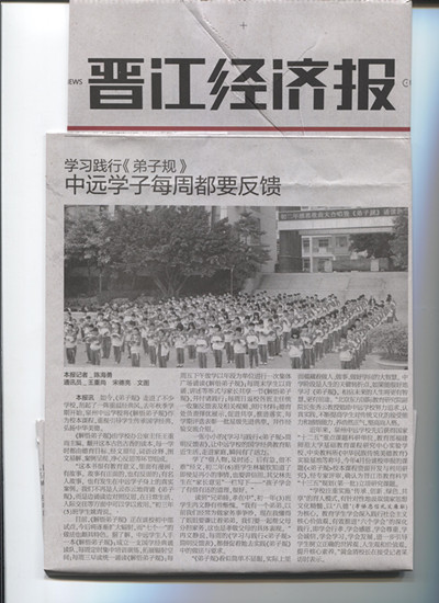 如今,《弟子規》走進了不少學校,刮起了一陣重溫經典風。去年秋季學期開始,泉州中遠學校將《解悟弟子規》作為校本課程,重視引導學生傳承國學經典,弘揚中華美德。 《解悟弟子規》由學校辦公室主任王重尚主編。翻開這本古色古香的讀本,每一學時都由德育目標、經文原句、詞語詮釋、圖文易解、案例呈現、凈心反思等環節組成。 “這本書很有教育意義,里面有漫畫、有故事。故事有正面的,也有反面的;有名人故事,也有發生在中遠學子身上的真實案例。我們不再是人云亦云地背誦《弟子規》,而是邊誦讀邊對照反思,在日常生活、人際交往等方面中可以學以致用。”初三年(5)班學生姚青說。 目前,《解悟弟子規》正在該校初中部試點,今后將逐漸擴大輻射,而“七個一”的做法也頗具特色。據了解,中遠學生人手一本《解悟弟子規》;成立一支國學經典誦讀隊,每周定時集中培訓演練,拓展輻射空間;每周三早讀統一誦讀《解悟弟子規》;每周五下午放學以年段為單位進行一次集體廣場誦讀《解悟弟子規》;每周末學生以背誦、講述等形式與家長共享一節《解悟弟子規》,并付諸踐行;每周日返校各班主任統一收集反饋表及相關視頻、照片材料;德育處負責擇優展示,促進共享,推進落實,每學期評選表彰一批星級先進典型,并作經驗交流介紹。 一張小小的《學習與踐行<弟子規>簡明反饋表》,讓中遠學校的國學經典教育貼近生活,走進家庭,瞬間有了活力。 學了“借人物,及時還。后有急,借不難”經文,初二年(6)班學生林毓欽知道了即使是再小的事情,也要講信用。其父林先生在“家長意見”一欄寫下——“孩子學會了有借有還的道理,很好。” 讀到“兄弟睦,孝在中”,初一年(3)班學生冉文靜有些慚愧。“我有一個弟弟,以前我們經常為做家務事爭吵,現在我懂得了姐姐要謙讓著弟弟,我們要一起幫父母分擔家務,這也是孝敬父母的具體表現。”冉文靜說,每周的《學習與踐行<弟子規>簡明反饋表》,都督促著她去實踐《弟子規》中的做法與要求。 “《弟子規》看似簡單不顯眼,實際上里面蘊藏著做人、做事、做好學問的大智慧。中學階段是人生的關鍵轉折點,如果能很好地學習《弟子規》,相信未來的人生將更有智慧,更有前途。”北京東方國際教育研究院副院長張秀云教授勉勵中遠學校努力追求、認真實踐,不斷提高學生對傳統文化的接受能力和感悟能力,養浩然正氣,塑高尚人格。 近年來,泉州中遠學校先后獲得國家“十二五”重點課題科研單位、教育部福建師范大學基礎教育課程研究中心實驗學校、中央教科所《中華民族傳統美德教育》實驗基地等稱號。今年4月份該校申報的課題《<弟子規>校本課程資源開發與利用研究》,經專家評審,確認為晉江市教育科學“十三五”規劃(第一批)立項研究課題。 “學校注重實施‘傳承、創新、綠色、共享’的育人模式,有針對性地汲取儒家思想文化精髓,以‘八德’(孝悌忠信禮義廉恥)為核心,教育學生學會深入踐行社會主義核心價值觀,有效推進‘六個學會’的深化踐行,即學會行孝、學會感恩、學會尊重、學會誠信,學會學習,學會發展,進一步引導學生樹立正確的世界觀、人生觀和價值觀,提升核心素養。”黃金盾校長在接受記者采訪時表示。