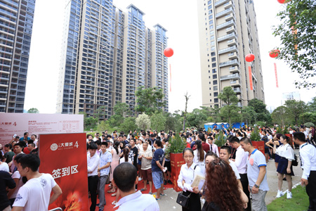 9月11日,三遠大愛城四期74—127㎡2-4房高拓新品盛大開盤,活動當天,千余人冒雨抵達現場,上演搶房盛況。