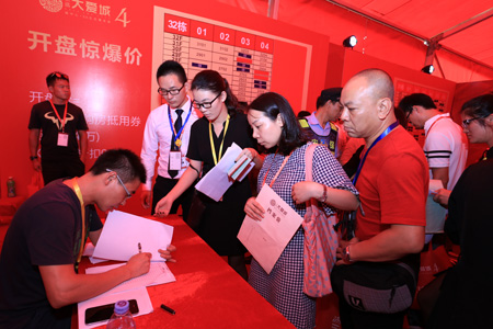 簽到現場客戶情緒高漲,雖遇大雨,但依然無法阻擋絡繹不絕的客戶,客戶等候區早已爆滿,連走道都被圍堵得水泄不通,人氣爆棚全城罕見。在激情昂揚的開場舞之后,開盤儀式正式啟動。隨著主持人宣布搖號正式開始,現場氣氛持續升溫,在場所有客戶都目不轉睛地盯著現場屏幕,生怕錯過自己的簽到號碼,緊張激烈的搶房氛圍充斥著整個銷售現場。