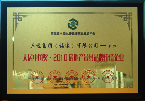 三遠(yuǎn)集團(tuán)喜獲“人居中國(guó)獎(jiǎng)·2010房地產(chǎn)最具品牌價(jià)值企業(yè)”