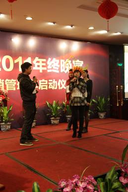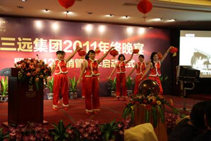 集團董事、常務副總裁陳章勃先生致開幕辭 歡樂祥和的晚宴現場 2012年腳步悄然而至,新年伊始,三遠集團于1月18日在泉州悅華酒店隆重舉辦2011年會晚宴暨2012營銷管理年啟動儀式。集團公司領導、眾多業界友人及集團全體員工盛裝出席,會場人聲鼎沸,熱鬧非凡。 集團吳遠康董事長與陳總簽訂責任狀 集團董事會成員啟動營銷管理年水晶球 晚上7點左右,眾多嘉賓在悠揚的鋼琴曲中陸續到場。宴會廳優雅的氛圍,伴以背景音樂、精致的會場布置以及華服、微笑、禮贊,活動氛圍十足。 陳總為營銷管理年宣傳口號優勝者頒獎 陳總與張清泉助理為營銷管理年宣傳海報揭幕 本次三遠集團2011年會晚宴的驚艷之處,在于“2012三遠地產集團營銷管理年”的盛大啟動儀式。三遠地產面對當前嚴峻的市場大環境,內強管理、外拓市場,提出2012年為三遠地產營銷管理年的建設口號,旨在憑借三遠地產22年的專業地產開發經驗及沉淀,用心構景,用愛筑家,平度市場波動時期,為居者著想,為后代留鑒。 吳董向來賓、員工們賀歲祝酒 火紅的舞蹈——《恭喜發財》 在啟動儀式上,三遠集團董事、常務副總裁陳章勃先生為優秀宣傳口號征集活動中的優勝者進行頒獎,借以鼓勵全體三遠員工獻計營銷、參與營銷。當晚,三遠集團各董事會領導還為“2012營銷管理年”舉行了宣傳海報揭幕,營銷管理中心團隊登臺高喊“營銷管理年”宣傳口號,進一步促使了營銷管理概念深入三遠人心。 情景劇《西游記之收編豬八戒》演員們表演得很認真 薩克斯獨奏小表演者 在盛大的“2012三遠地產集團營銷管理年啟動儀式”之后,是員工自創節目表演,合唱、獨唱、舞蹈、薩克斯獨奏、情景劇《西游記之收編豬八戒》等等,一波接著一波的創意搞笑節目,博得了現場觀眾的陣陣掌聲。 吳董抽取IPAD大獎獲得者,獲獎者不勝歡喜 獲獎者手捧大獎,喜樂融融 在節目表演的同時,穿插進行著令人歡呼雀躍的抽獎環節。當晚,現金大獎、微波爐、按摩器、蘋果IPAD大獎等數十項精彩好禮紛紛呈現,熱鬧的頒獎儀式將晚宴的現場氣氛推向了高潮。