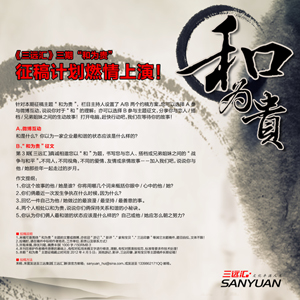 針對本期征稿主題“和為貴”,欄目主持人設(shè)置了A/B兩個約稿方案。您可以選擇A參與微博互動,說說你對于“和”的理解;亦可以選擇B參與主題征文,分享你與戀人/搭檔/兄弟姐妹之間的生動故事!打開電腦,趕快行動吧,我們在等待你的故事! A、微博互動:和是什么?你以為一家企業(yè)最和諧的狀態(tài)應(yīng)該是什么樣的? B:“和為貴”征文:第3期《三遠(yuǎn)匯》真誠相邀您以“和”為題,書寫您與戀人、搭檔或兄弟姐妹之間的“戰(zhàn)爭與和平”。不同人,不同視角,不同的愛情、友情或親情故事……加入我們吧,說說你與他/她那些年一起走過的歲月。 作文提綱: 1、你這個故事的他/她是誰?你將用哪幾個詞來概括你眼中/心中的他/她? 2、你們倆最近一次發(fā)生爭執(zhí)在什么時候,因為什么? 3、回憶一件自己為他/她做過的最浪漫/最堅持/最善意的事。 4、兩個人相處以和為貴,說說你們倆保持關(guān)系和諧的小秘訣。 5、你認(rèn)為你們倆人最和諧的狀態(tài)應(yīng)該是什么樣的?自己或他/她應(yīng)怎么朝之努力? 投稿說明: 1、來稿可是圍繞“和為貴”主題的文章或微博,亦歡迎“游記”、“影評”、“家有寶貝”、“三遠(yuǎn)印象”等其它主題稿件,題目自擬,文體不限! 2、投稿時,請在稿件中標(biāo)明作者姓名,工作單位、職務(wù)以及聯(lián)系方式! 3、所有來稿,擇優(yōu)刊載,稿費豐厚(1000字/150RMB)! 4、本刊在維護(hù)作者稿件原意的基礎(chǔ)上,有權(quán)對擬用來稿文字進(jìn)行修改、增刪,有權(quán)對圖表按規(guī)范、標(biāo)準(zhǔn)等要求作技術(shù)處理! 5、本期“和為貴”主題征稿截止時間至2012年4月5日;其他游記、影評、三遠(yuǎn)印象、家有寶貝等主題稿件長期征稿! 投稿方法:來稿、來圖發(fā)送至三遠(yuǎn)集團(tuán)《三遠(yuǎn)匯》新浪官方郵箱:sanyuan_hui@sina.com,或發(fā)送至1339862171QQ郵箱。 《三遠(yuǎn)匯》3期征稿海報